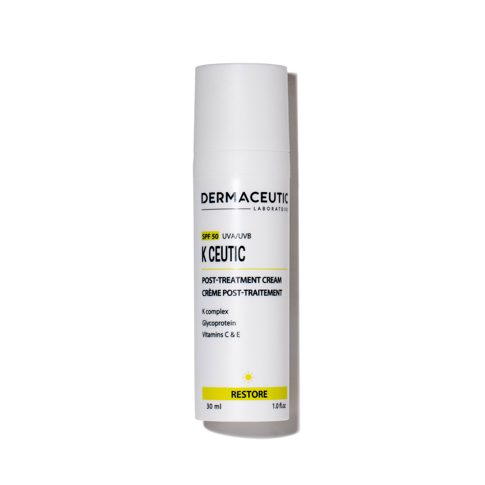 K CEUTIC restores and protects your skin. It delivers essential nutrients and a very high SPF 50, offering UVA/UVB protection. This formula is designed to repair, nourish, protect, and soothe the skin.